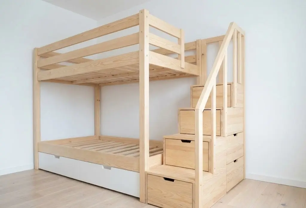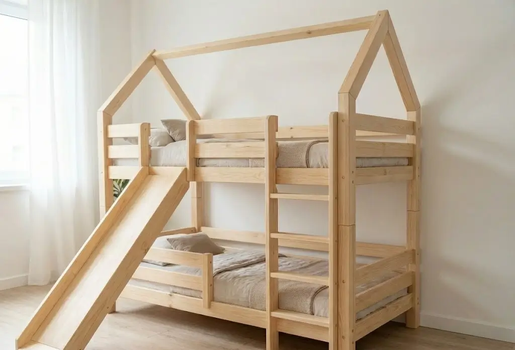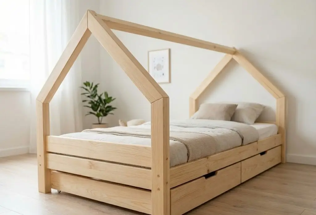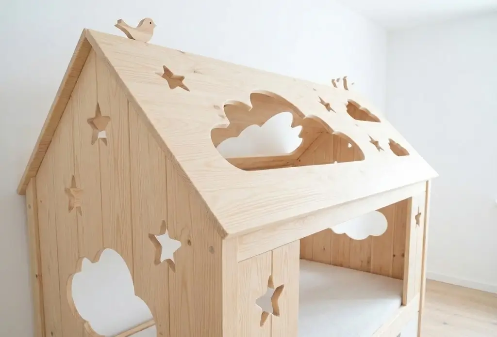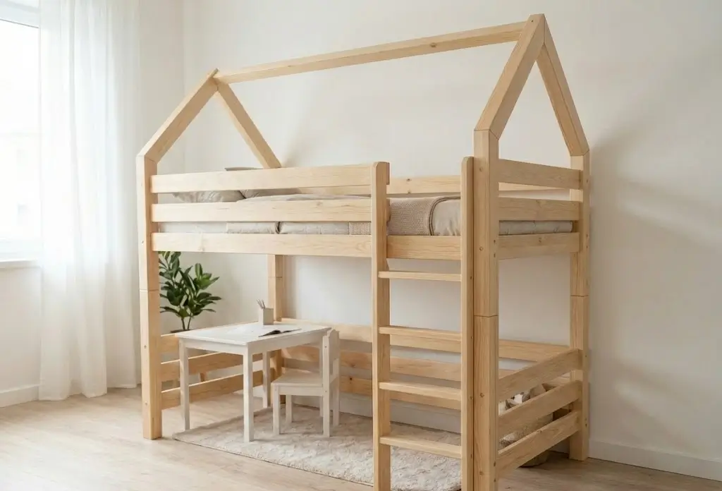 Совет эксперта №2. Планируя кровать-чердак домик, обязательно проверьте высоту потолков. Если перекрытие ниже 250 см, от такого варианта лучше отказаться — сидя на верхнем ярусе, ребёнок будет упираться головой в потолок. Для низких помещений рассмотрите напольный домик с выдвижными ящиками — он даёт место для хранения без ущерба комфорту.