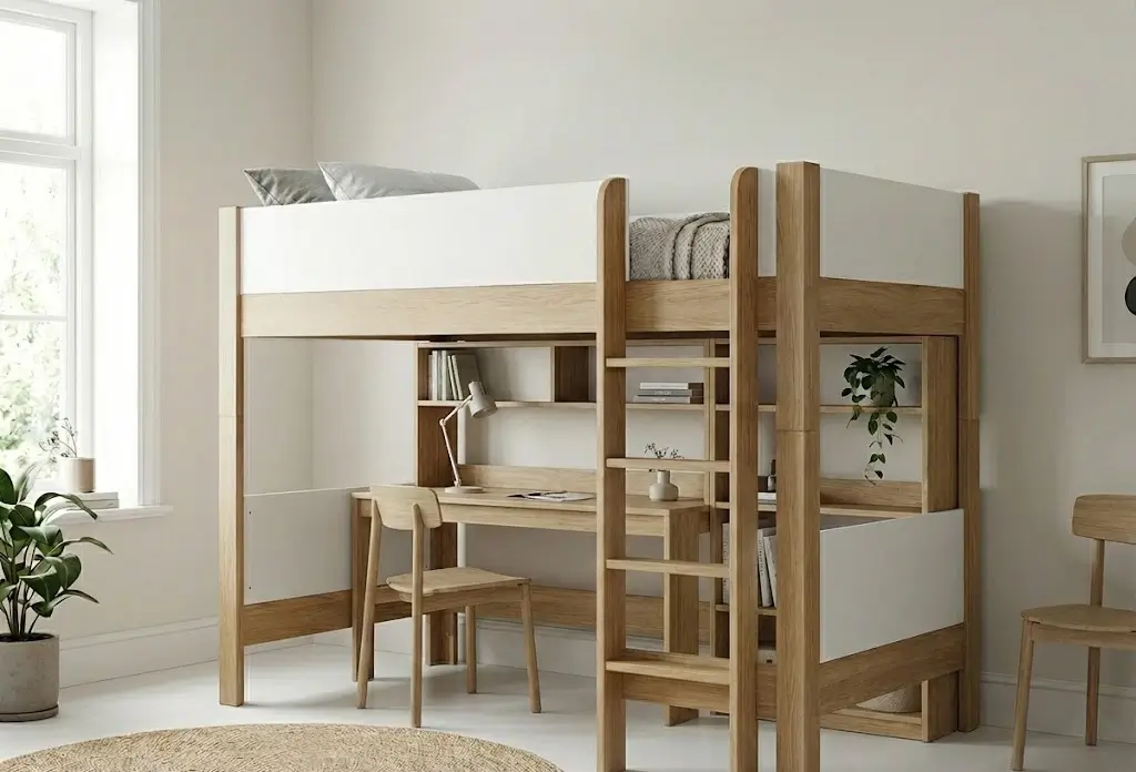 | Кровать-чердак | Максимальная (спальное место наверху, рабочая/игровая зона внизу) | Сон + учеба/игры/хранение | от 6 лет |