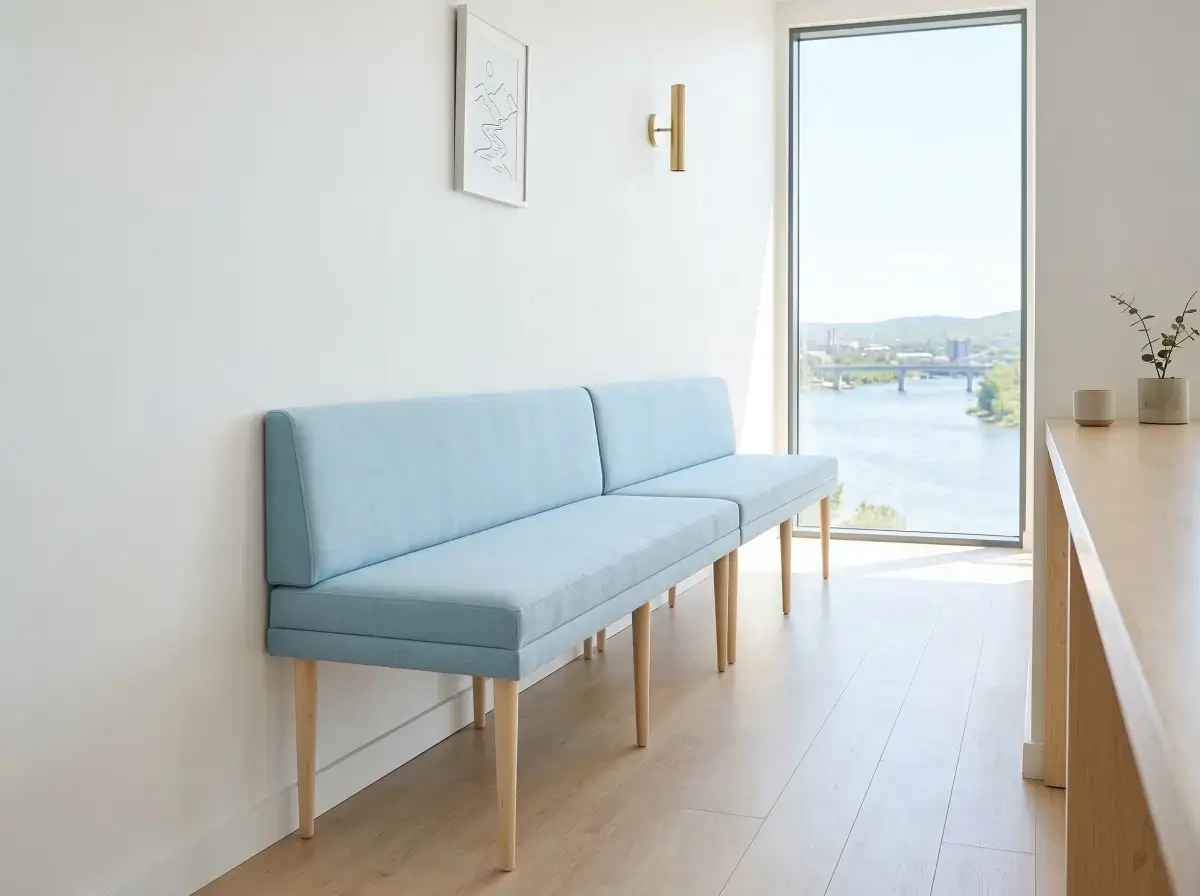 Этап 1 — замер и анкетирование. Выезжаю на объект, фиксирую габариты помещения, расположение розеток, выступов, радиаторов, окон и дверей. Отдельно обсуждаем сценарий использования: будет ли это кофейня с посадкой на 20–40 минут или ресторан, где сидят по два-три часа. От этого зависят требования к наполнителю и глубине сиденья.