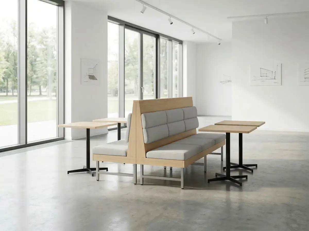 Для каркаса я всегда рекомендую два варианта. Стальной профиль с порошковой окраской — рабочая лошадка для заведений с высокой проходимостью. Не боится влаги, не рассыхается, не скрипит при правильной сварке. Массив бука или дуба — для премиальных интерьеров, где важна тактильная теплота и эстетика натурального материала. Компромиссный гибрид: несущий силовой каркас из стали, а все видимые элементы — из дерева. Это даёт экономию 25–30 процентов бюджета при сохранении премиального внешнего вида.