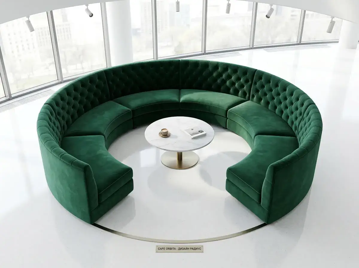 | Радиусные диваны (полукруглые/круглые) | от 17 000 сом/м.п. | 14–20 дней |