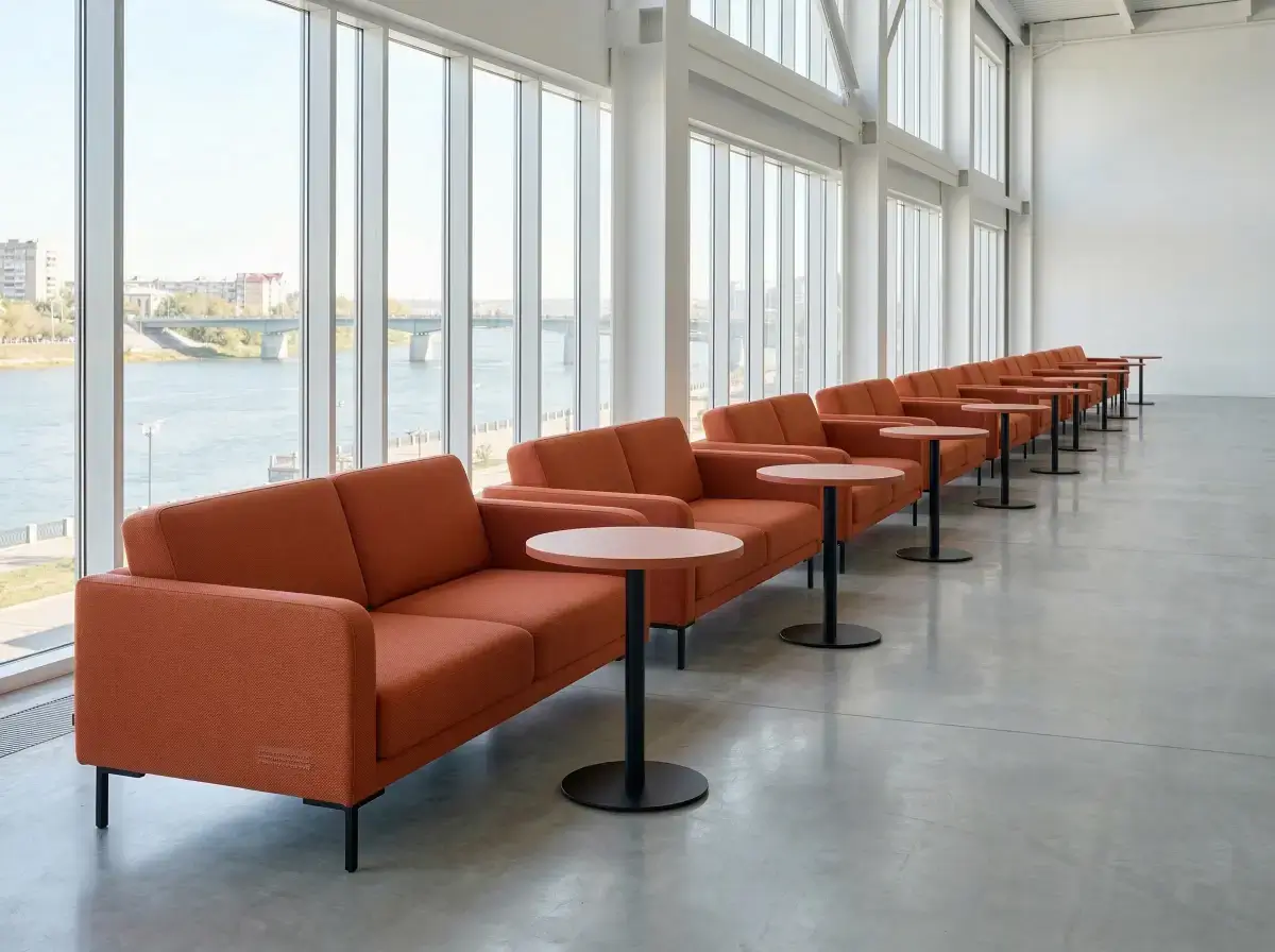 Используем ткани с тестом Мартиндейла от 100 000 циклов (Cordura, микровелюр). Обивка сохраняет цвет и плотность при посещаемости до 200 человек в сутки.