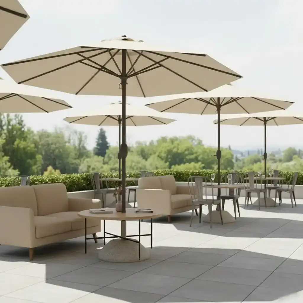 Используем металл S235, древесину хвойных пород и огнестойкие ткани класса B1 — соответствие ГОСТ/EN, безопасно для клиентов и персонала.
