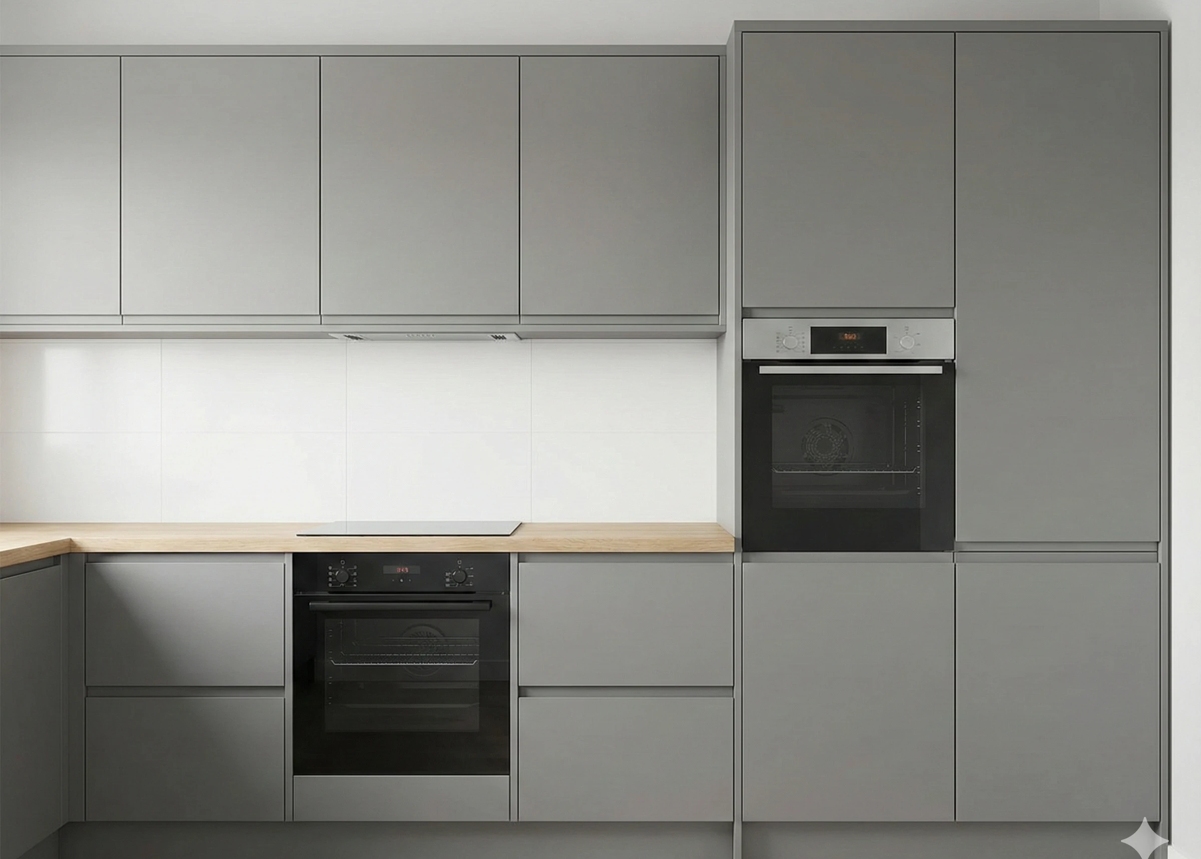 Материалы класса E1 без запаха, влагостойкая лазерная кромка и монтаж за 24 часа с гарантией 1 год по договору.