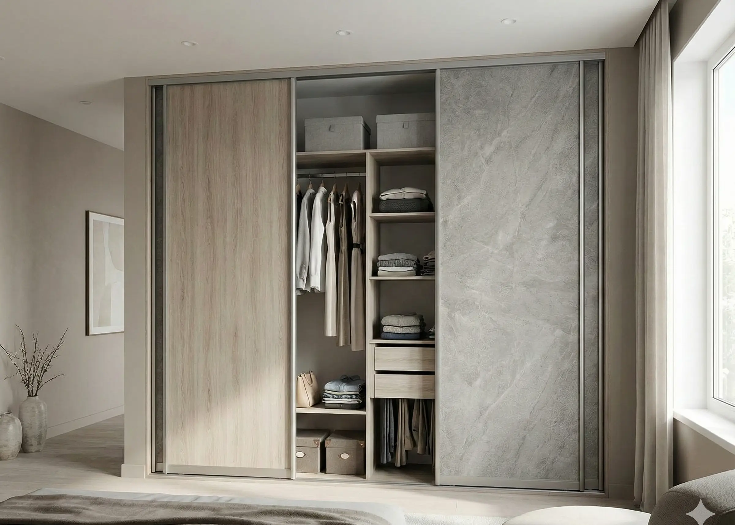 | Шкаф-купе встроенный (наполнение ЛДСП) | от 8 300 сом / кв. м | ≈ 7–10 дней |