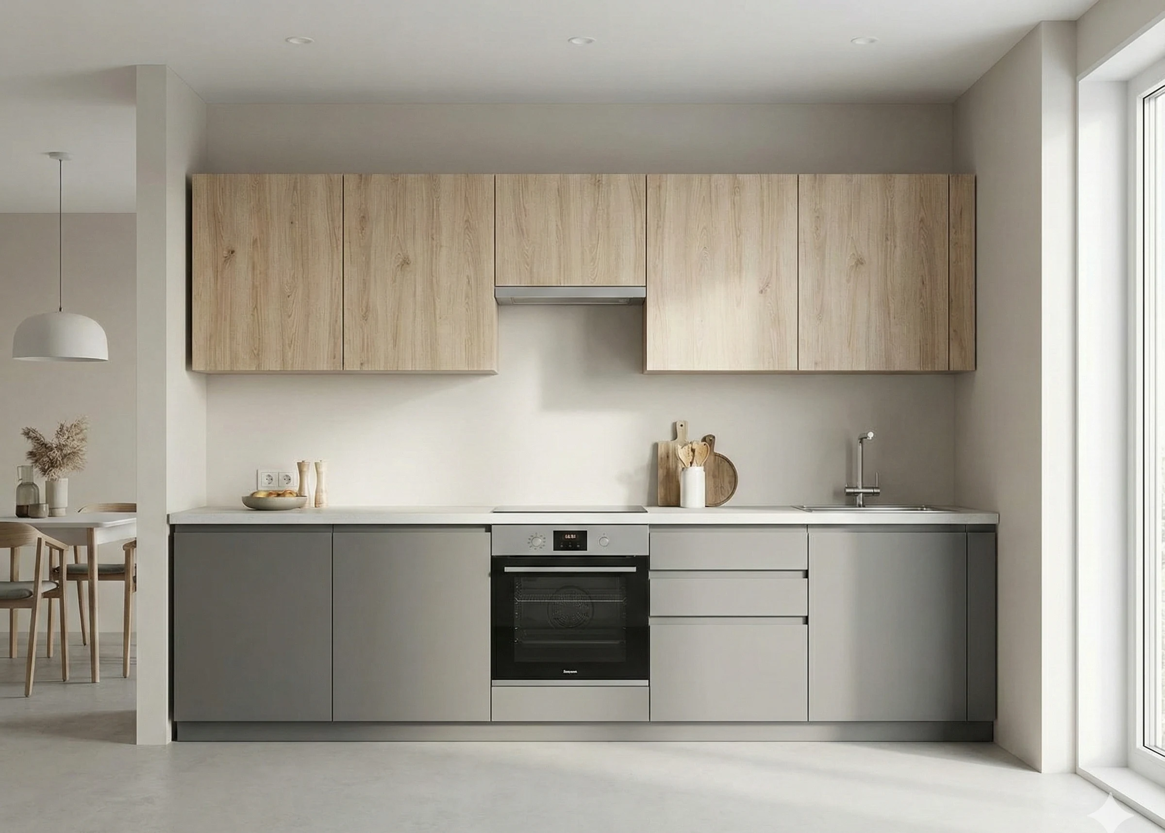 Для кухни нужна влагостойкая плита (зелёный срез) и качественная кромка ПВХ на всех торцах. Столешницы лучше делать из постформинга или камня, но и ЛДСП с кромкой 2 мм служит долго.
