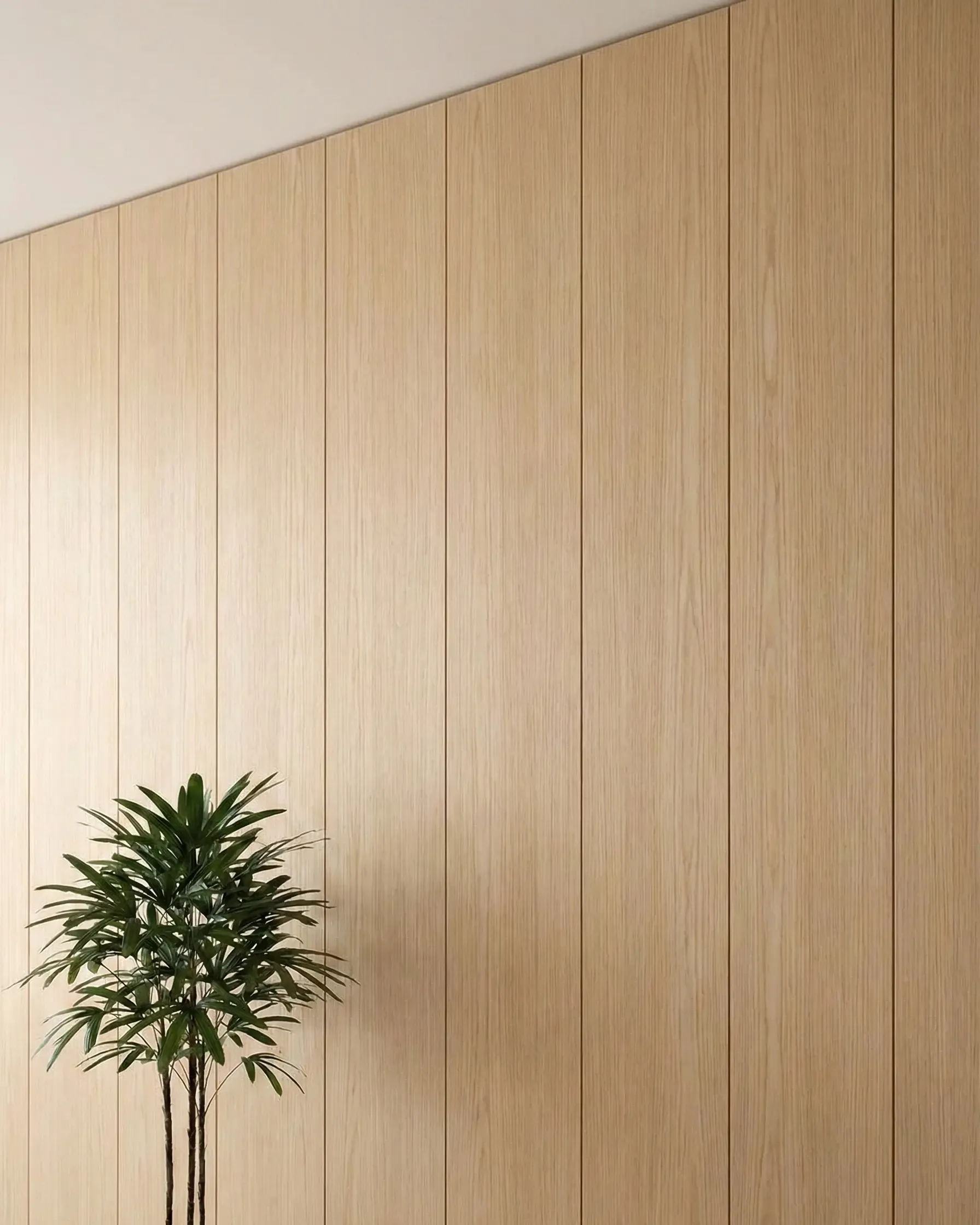 Дизайнеры, проектирующие высокие шкафы от пола до потолка. Высота фасадов из массива ограничена технологически — доски неизбежно коробит. Шпонированные панели высотой 2800 мм делаются без видимых стыков и швов — рядовая задача.