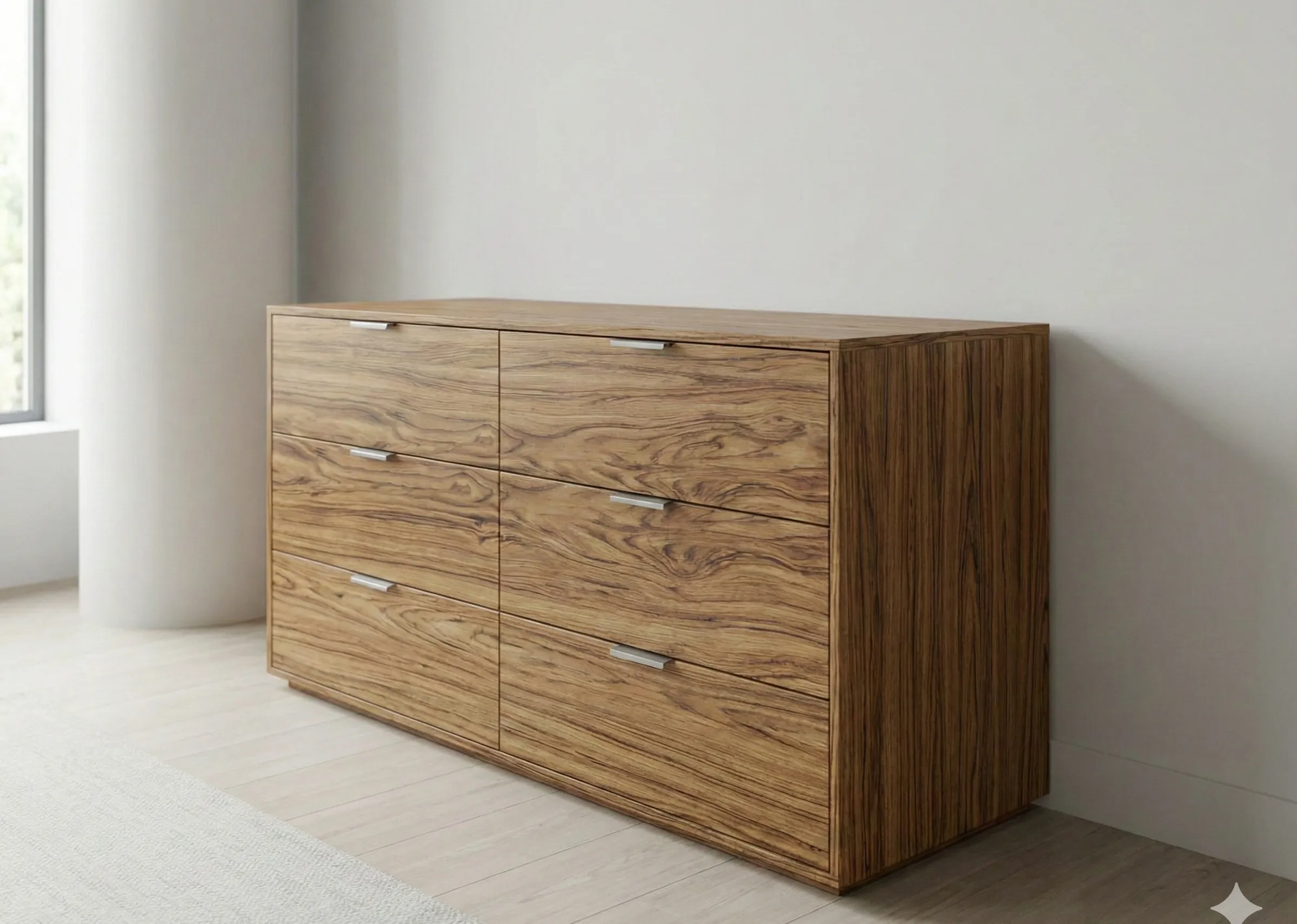 Совет эксперта от Тимура Султанова: «Попросите у дизайнера карту раскроя шпона. Профессионал всегда согласует с вами направление волокон на фасадах. Тогда стыки будут выглядеть как продолжение единого полотна, а не как лоскутное одеяло».