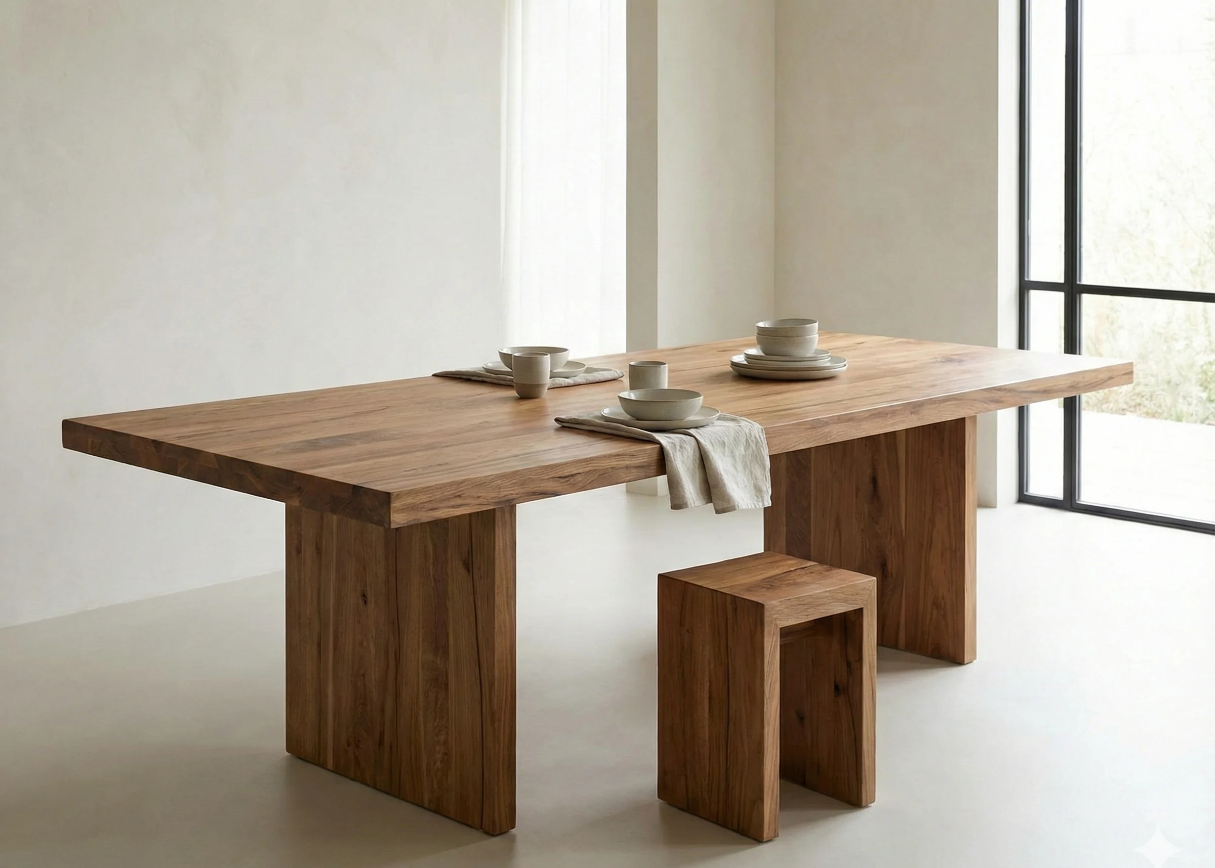 Стол из сосны на заказ — прекрасное решение для дачи, веранды, детской комнаты. Для кухни, где рубят мясо и ставят горячие кастрюли, сосна менее подходит — она мягче, чем дуб или лиственница. Но для обеденного стола в столовой — идеально.