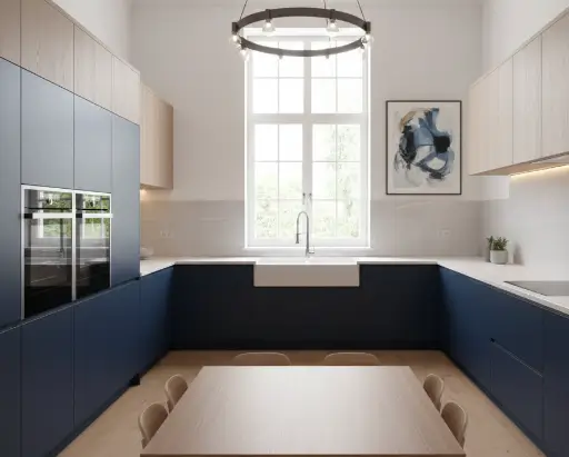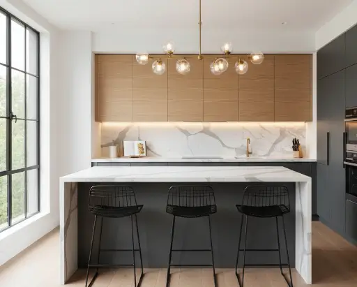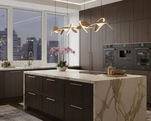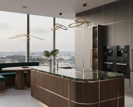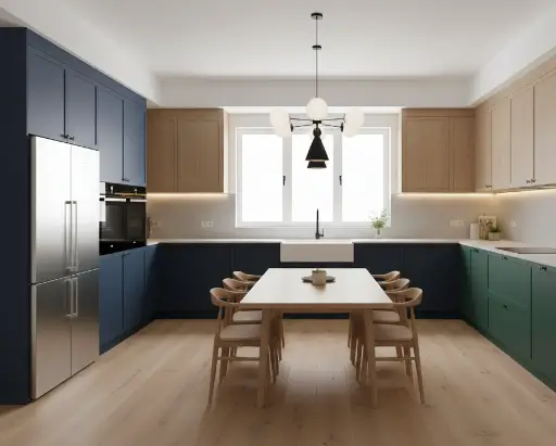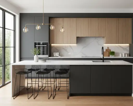 Совет эксперта от Азамата Султанова: «Проверьте, можете ли вы открыть дверцу холодильника или духовки, стоя у столешницы. Норма — минимум 90 см свободного пространства перед зоной готовки. Если меньше, не бойтесь заказывать мебель с откидными столешницами или выкатными столами. Это не дань моде, а безопасность и удобство каждый день».