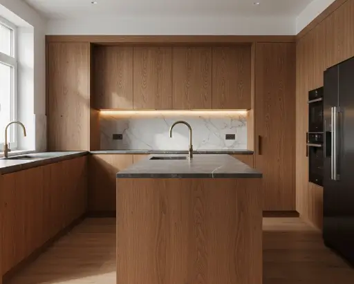 Компромисс очевиден: Выбирая недорогой вариант с плёночными фасадами, вы экономите сейчас, но через пять лет у мойки начнётся отслоение. Эмаль стоит дороже, но терпит влажную уборку. Шпон — премиум-решение для тех, кто хочет тепло натурального дерева без капризов массива.