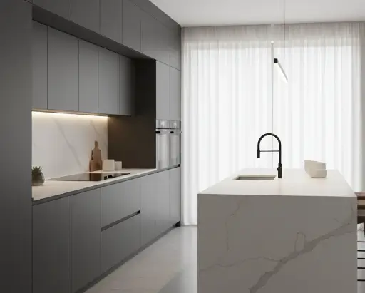 Ключевой компромисс: Выбирая дешёвую столешницу из ЛДСП, вы жертвуете возможностью ставить горячую сковороду прямо на поверхность и получаете риск разбухания от влаги. Акрил и кварц требуют бережного мытья без абразивов, но служат десятилетиями и легко восстанавливаются.