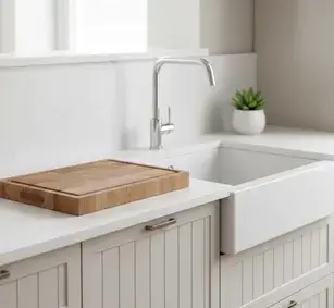 Представьте себе костюм: пиджак и брюки. Если они одного цвета, образ скучный. Если слишком контрастные — кричащий. Так же и со столешницей и фартуком. Я рекомендую два беспроигрышных варианта. Первый — столешница тёмная (например, кварц под сланец), фартук светлый (белая плитка или скинали). Второй — столешница нейтральная (бетон, белый камень), фартук акцентный (цветной, с рисунком). Чего нельзя делать — столешницу и фартук одинаково яркими. Они начнут спорить. Выбирая яркий фартук, вы жертвуете спокойствием интерьера — но получаете эффектный акцент.