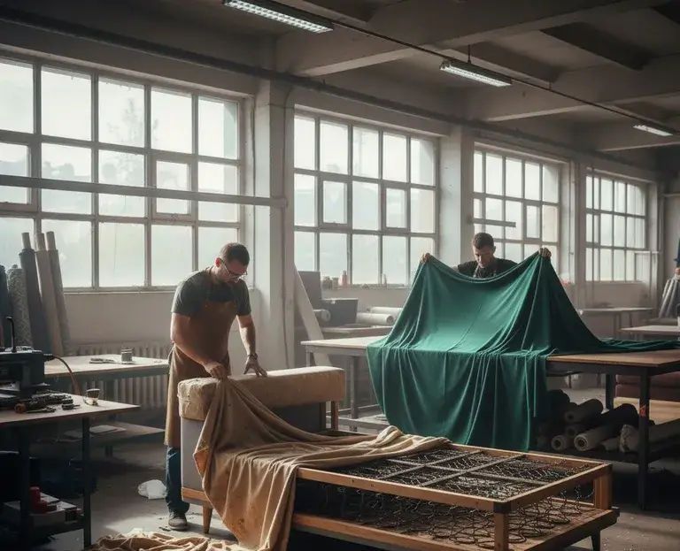 - Подбор сырья. Заказчик сам решает, из какого дерева сделан остов, какая набивка будет внутри и какое полотно украсит фасад. Это даёт полный контроль над качеством и безвредностью. При персональном производстве материалы подбираются с учётом задач, конструкция учитывает нагрузки и метраж.