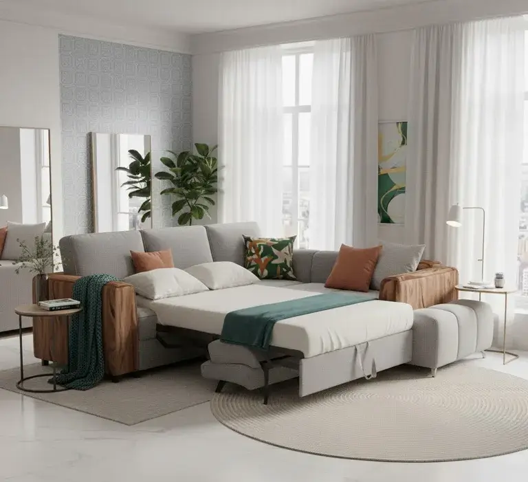 Совет эксперта от Данияра Исмаилова, ведущего дизайнера-технолога мебельного производства в Бишкеке: «Перед выбором механизма измерьте дистанцию от дивана до стены и убедитесь, что для раскладывания хватит места. Еврокнижка требует свободной зоны спереди, аккордеон — сбоку, выкатной — только впереди. Ошибка в расчётах ведёт к тому, что изделие невозможно разложить в отведённой нише».