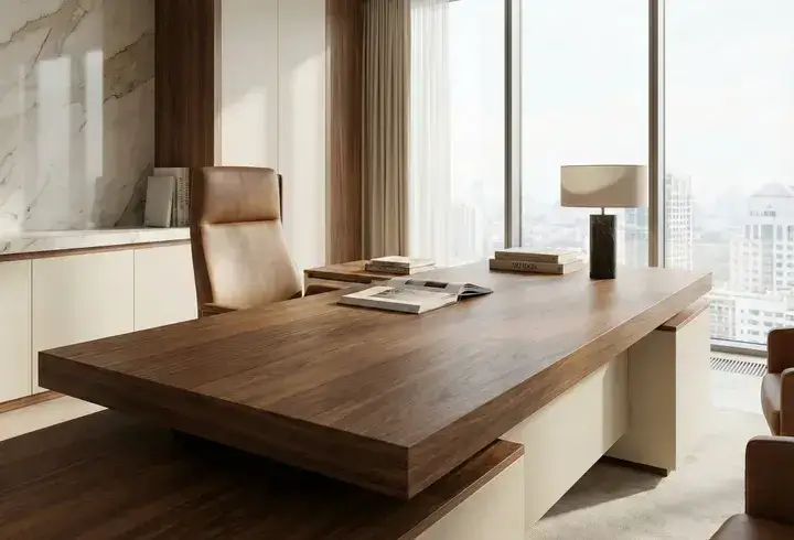*Примечание: для рабочих столов операционистов, за которыми сидят по 8 часов, оптимален ЛДСП 38 мм с HPL-пластиком. Он выдерживает падения ручек, кружек и локтей. Для руководителей и переговорных зон часто выбирают компакт-ламинат — тонкий, стильный и невероятно износостойкий. Выбирая дешёвое покрытие, экономят сейчас, но тратятся на замену через год из-за сколов и вздутий.*
