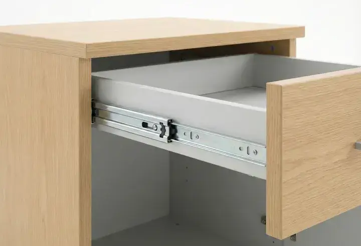 Примечание: дешёвые роликовые направляющие не обеспечивают полного выдвижения — содержимое у задней стенки остаётся невидимым. Шариковые направляющие полного выдвижения решают проблему и служат в 3–4 раза дольше.