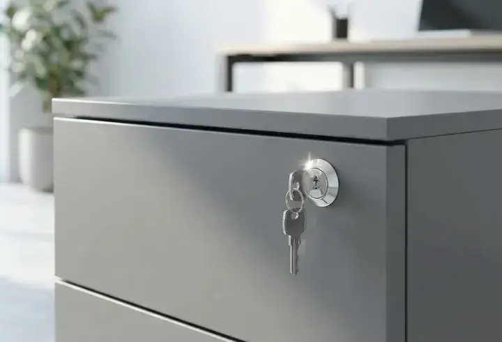 | Механический на верхний ящик | Средняя | Среднее (нужен ключ) | Низкая | Личные тумбы сотрудников |
