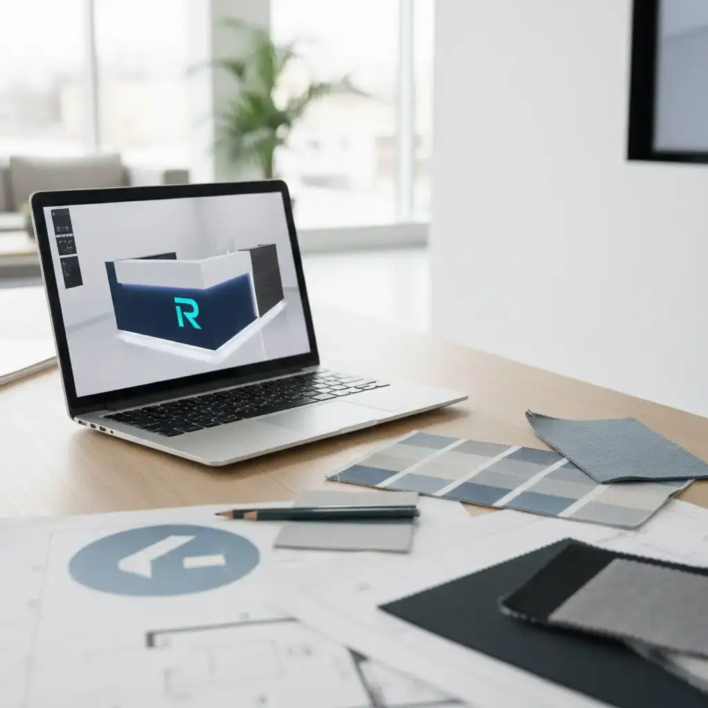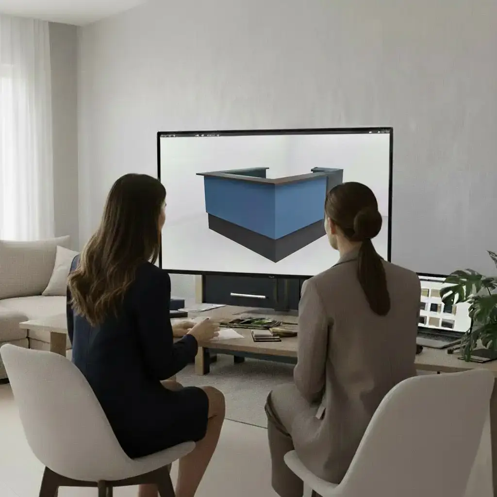 Показываем будущую стойку ресепшн в 3D до запуска в производство. 98% клиентов утверждают проект с первого или второго варианта.