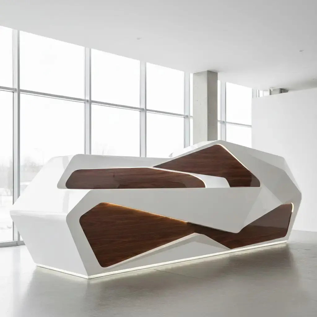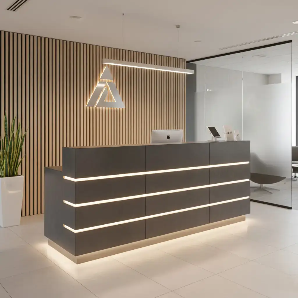 Проектируем ресепшн под 100% задач клиента: от медцентров до бизнес-центров. Более 120 реализованных проектов в Бишкеке с уникальной геометрией и стилем.