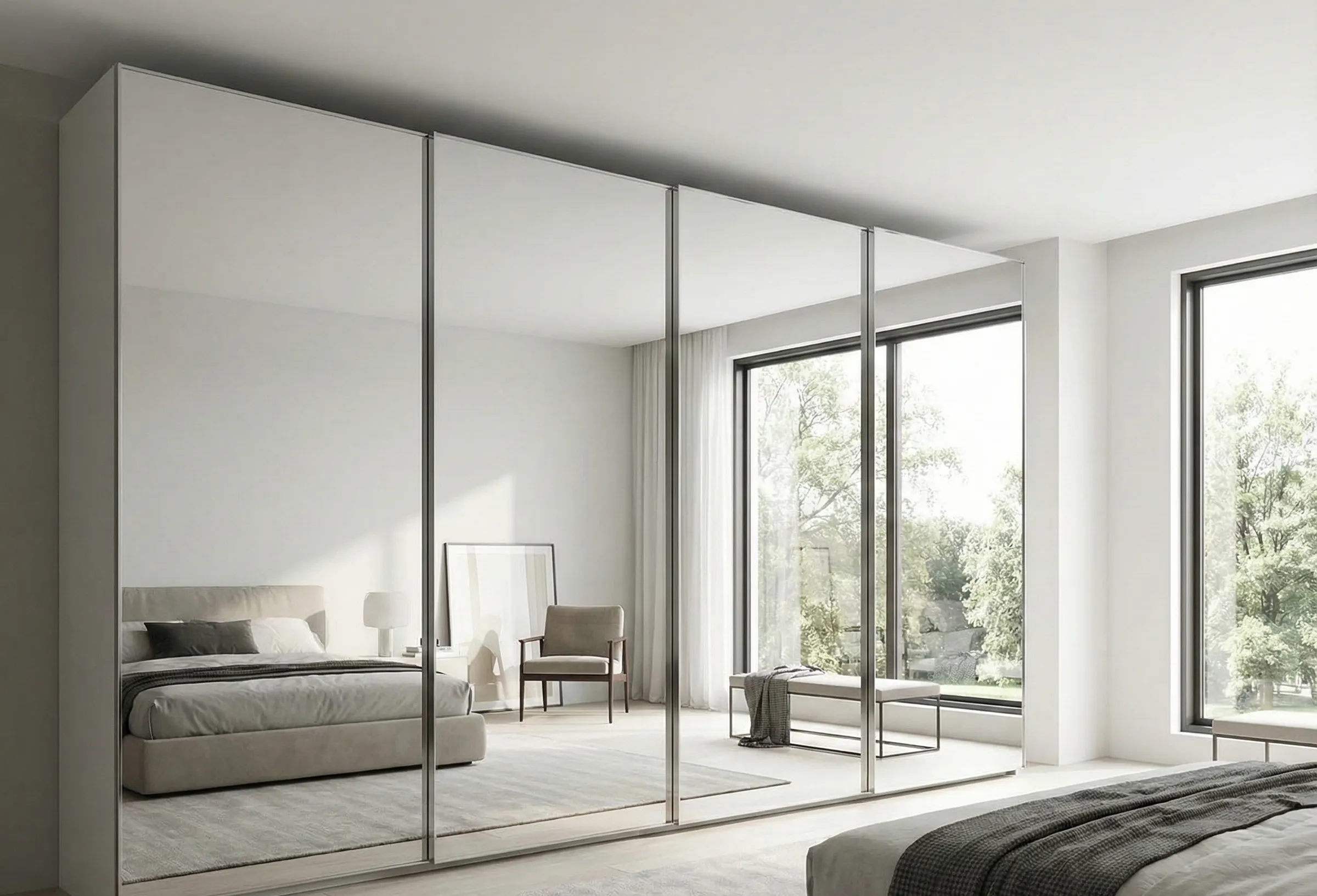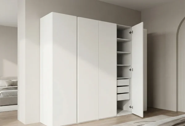 Совет эксперта от Эрлана Омурова: «Перед тем как заказать распашной шкаф, проверьте расстояние от предполагаемого места до противоположной стены. Если меньше 100 см, распашные двери будут постоянно задевать мебель или мешать проходу. В таких случаях лучше рассмотреть раздвижную систему. Но если места достаточно — распашной вариант вне конкуренции».