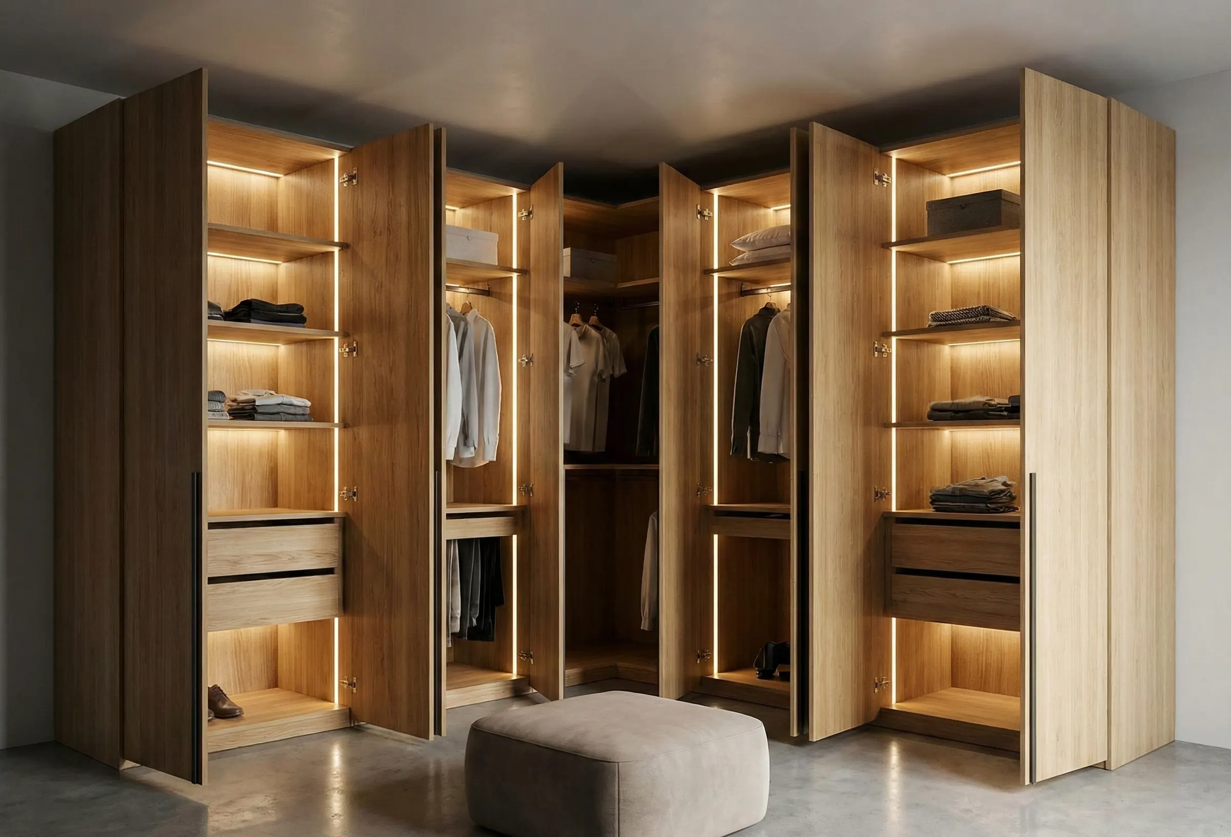 Распашная конструкция — это выбор тех, кто ценит мгновенный доступ к вещам, тишину и надёжность. Она требует свободного места перед собой, но взамен даёт бесшумную работу и полный обзор содержимого. При индивидуальном заказе вы получаете идеальную ширину дверей, усиленные петли для тяжёлых фасадов и точную подгонку под нишу. Не экономьте на петлях и кромке — это те детали, которые вы будете трогать каждый день. Доверяйте изготовление профессионалам, которые делают выездной замер и 3D-проект. Приезжайте в мастерскую, откройте и закройте образцы дверей, почувствуйте разницу между дешёвыми и качественными петлями. Правильно спроектированный распашной шкаф прослужит 15–20 лет и будет радовать вас тишиной и порядком.