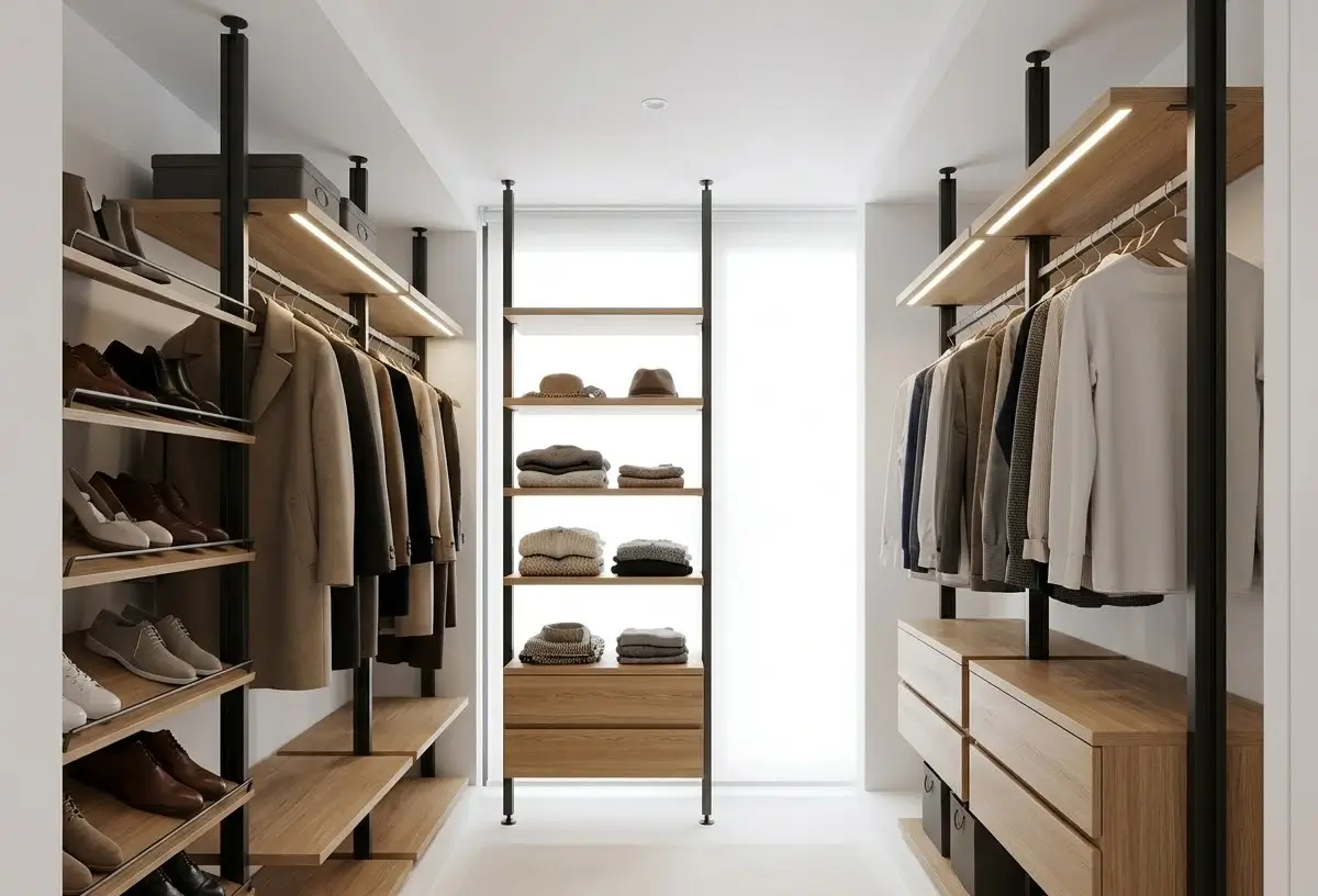 В девяностые и начале двухтысячных такие конструкции делали топорно. Взяли лист ДСП, прикрутили его к стенам, внутри — пара полок из обрезков, дверцы на дешёвых петлях. Через год всё перекашивалось, полки провисали, задняя стенка отходила. В двухтысячных появились первые европейские системы: металлические каркасы, регулируемые опоры, качественные направляющие. Сейчас мы проектируем встроенный шкаф в спальню или коридор с помощью 3D-моделирования, где каждая полка проверяется на прогиб, а направляющие подбираются под вес будущего наполнения. Мы знаем, что штанга для плечиков должна крепиться не к полке, а к усиленному профилю. И что за плинтусом нужно оставлять вентиляционный зазор.
