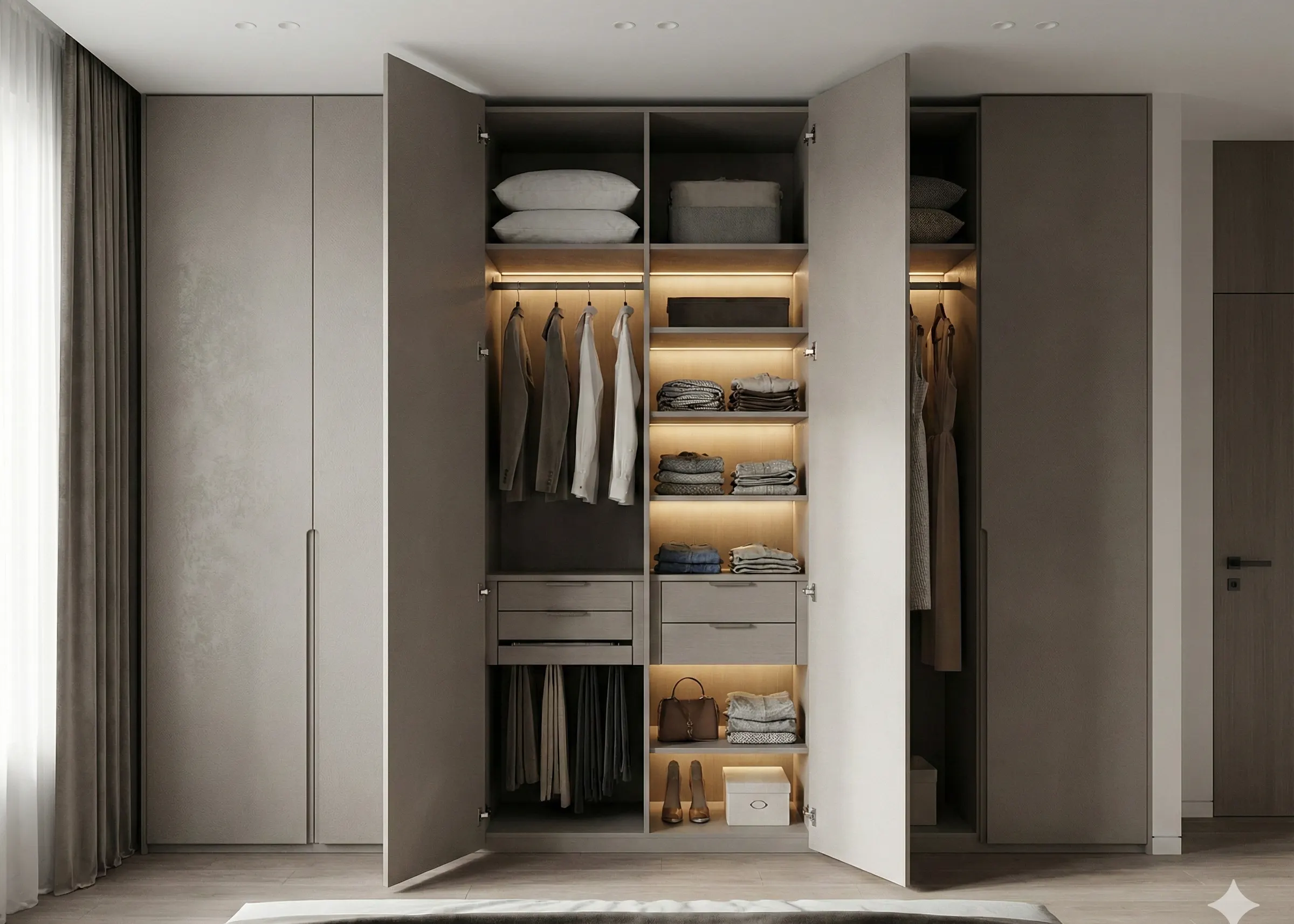 Ключевой тезис раздела: Двадцать лет назад встроенный шкаф в Бишкеке был просто нишей, зашитой листом ДСП с парой полок. Сегодня это модульная система с расчётом нагрузок, бесшумными направляющими и продуманной эргономикой.