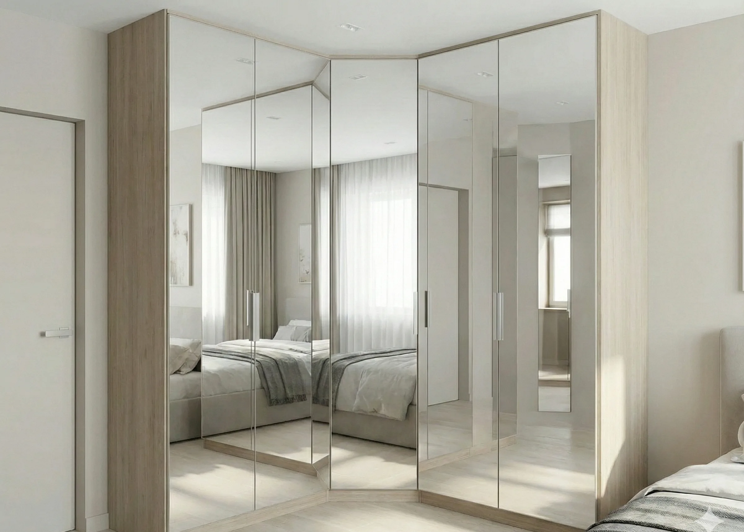 | Зеркальные фасады (серебро / бронза / графит) | от 4 600 сом / дверь | — |