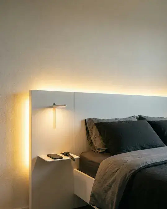 - Уникальный облик. Изголовье на заказ воплощает любую задумку: от классической каретной стяжки до асимметричных геометрических панно, от встроенной LED-подсветки до скрытых полок.