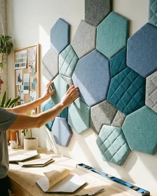 | Модульное | Отдельные блоки к стене | Гибкость композиции | Можно комбинировать | Геометрические панно, соты |