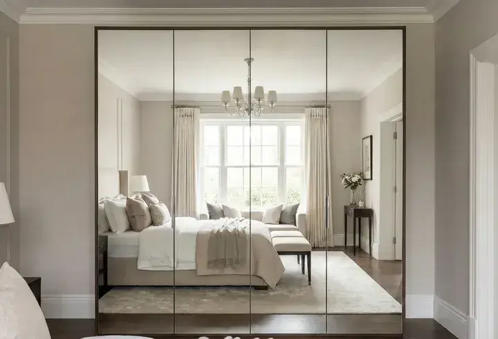 Используем зеркала Mirox (Бельгия) с армирующей пленкой. Даже при сильном ударе осколки не рассыпаются, обеспечивая 100% безопасность для детей в спальне.