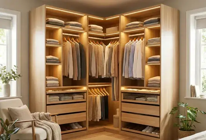 Выбор типа хранилища зависит от геометрии комнаты, объёма гардероба и личных предпочтений, причём каждое решение — корпусное, встроенное, угловое или купе — имеет свои плюсы и неизбежные компромиссы.