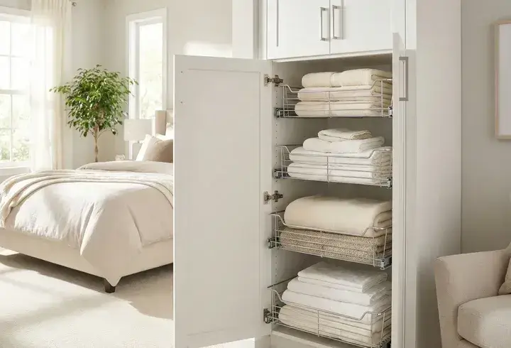 Совет эксперта от Азамата Бекбосунова, ведущего дизайнера-технолога мебельного производства в Бишкеке: «Не экономьте на петлях и направляющих. Замена фурнитуры в готовом изделии — сложная операция, сопоставимая по стоимости с новым фасадом. Лучше сразу заложить качественные комплектующие».