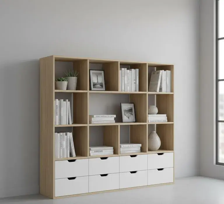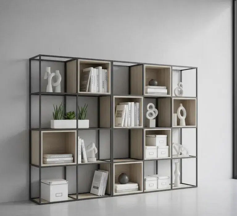Перегородки-стеллажи — решение для офисов и магазинов: конструкция одновременно делит пространство и служит системой хранения. Важно учитывать, что такая перегородка несёт двойную нагрузку: вес товара плюс возможное давление со стороны людей, случайно опирающихся на неё.