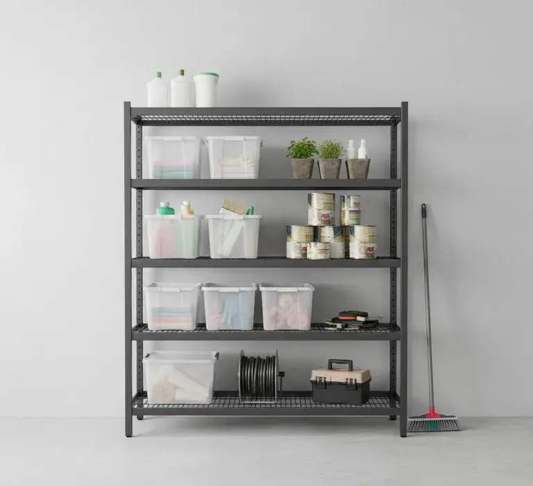 Стеллажи для хранения бытовых принадлежностей в подсобках, кладовых и на даче.