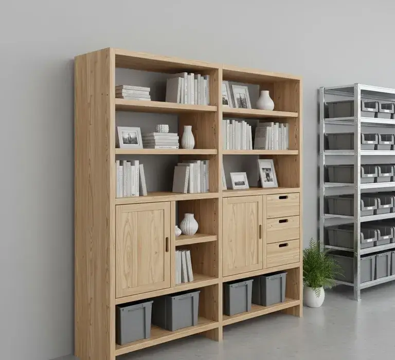 Для склада с тяжёлым товаром — только металлическая полка. Для магазина с красивой выкладкой — комбинация металлокаркаса и деревянных или пластиковых настилов. Для архива — влагостойкое ЛДСП: документы весят немного, а цена позволяет сделать ячейку под каждую папку без раздувания бюджета.