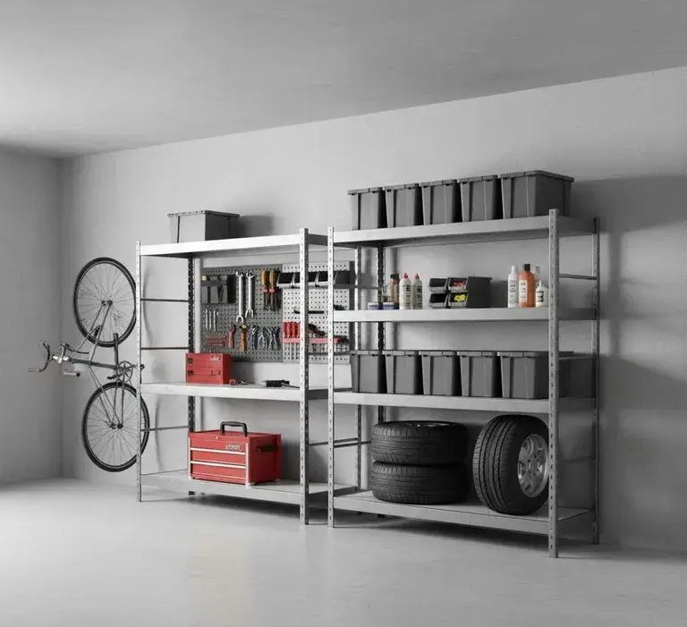 Практичные стеллажи для инструментов, шин, запчастей и хозяйственного инвентаря.