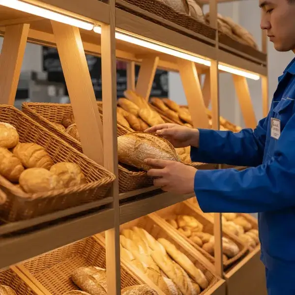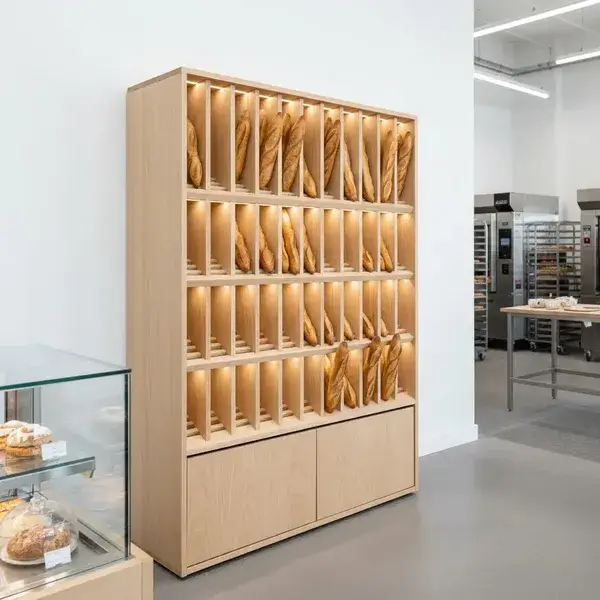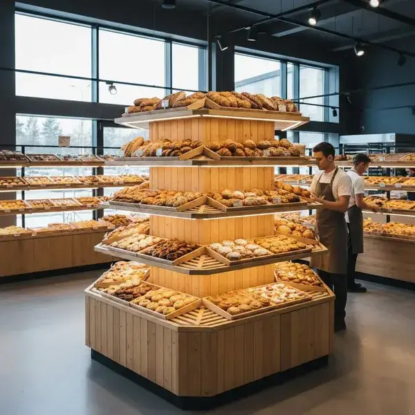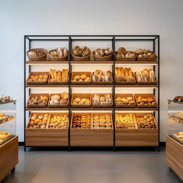 Конструкция с наклоном полок 15° и LED-подсветкой 2700K создает эффект «домашней пекарни», увеличивая средний чек в хлебном отделе на 1/3 по данным аудита 2024 года.