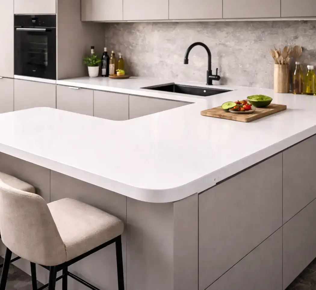 Факт 3. Светлый акрил со временем желтеет от ультрафиолета. Для солнечных кухонь в Бишкеке лучше выбирать кварц или тёмные оттенки.