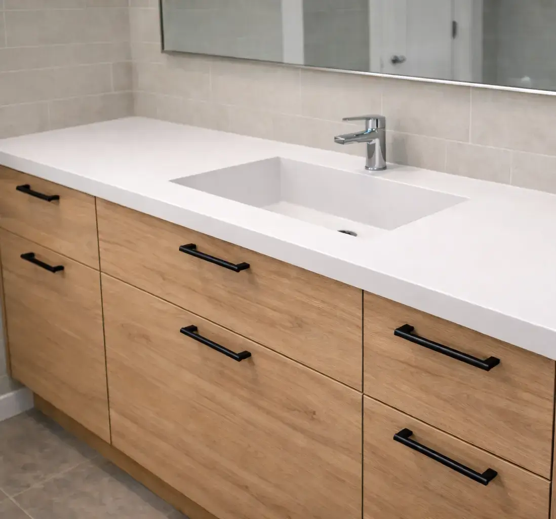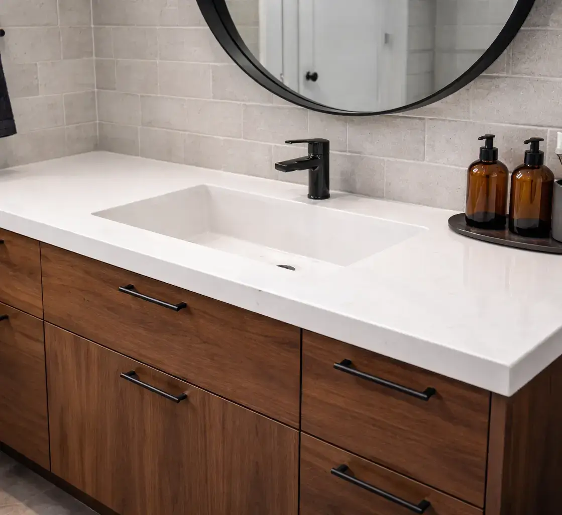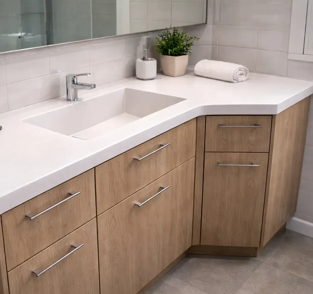 Столешница в ванную на заказ в Бишкеке — создание идеальной рабочей плоскости, радующей гигиеничностью и эстетикой долгие годы. Готовые решения манят скоростью, но проигрывают в индивидуальности и долговечности.