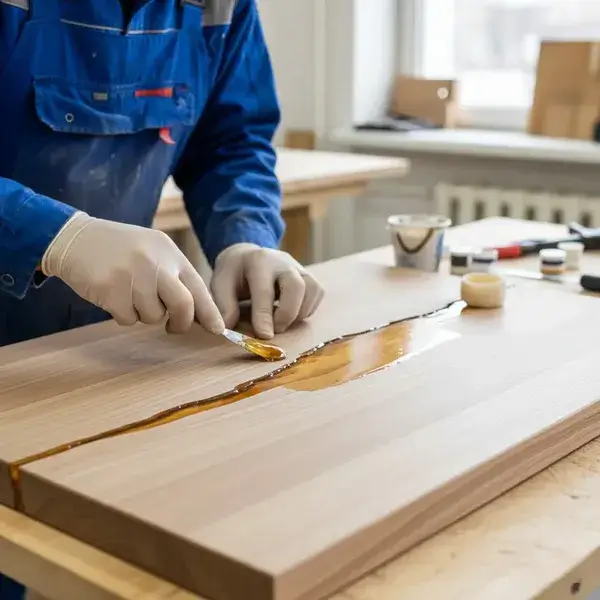 Совет эксперта от Каната Осмонова, главного мастера по деревообработке и технолога мебельного производства: «Перед нанесением масла обязательно проведите обессмоливание специальным составом или уайт-спиритом. Смола, выступившая под маслом, создаст липкие пятна. После обессмоливания масло ложится ровно и служит годами. Для кухни и ванной это обязательная процедура».