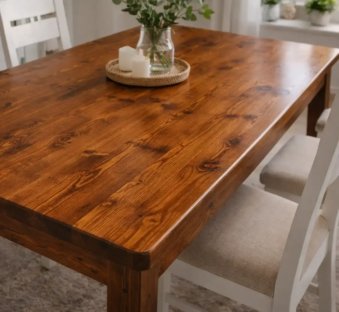 Используем полиуретановые лаки повышенной твердости. Они создают защитный барьер, компенсируя природную мягкость сосны и защищая её от бытовых царапин.