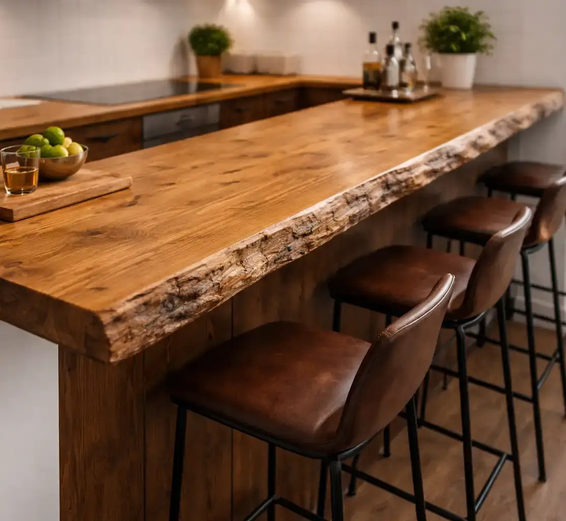 - «Живой» край. Слэбы с необработанной кромкой для обеденных столов и барных стоек в стиле рустик.
