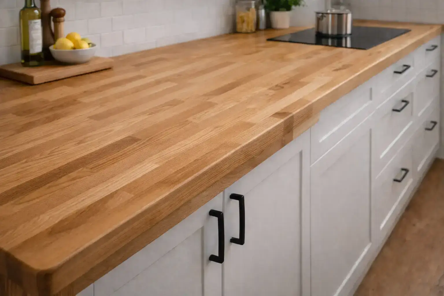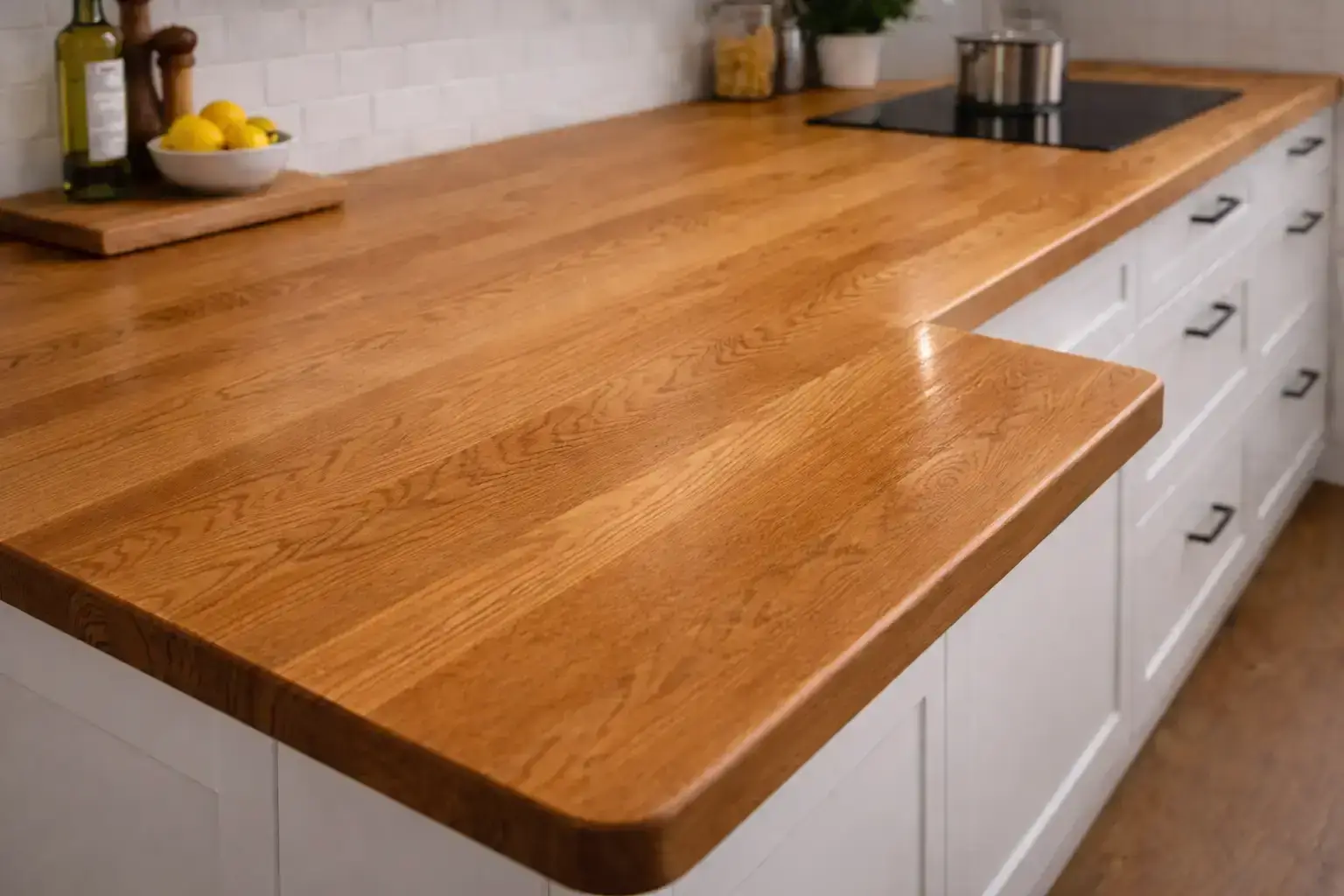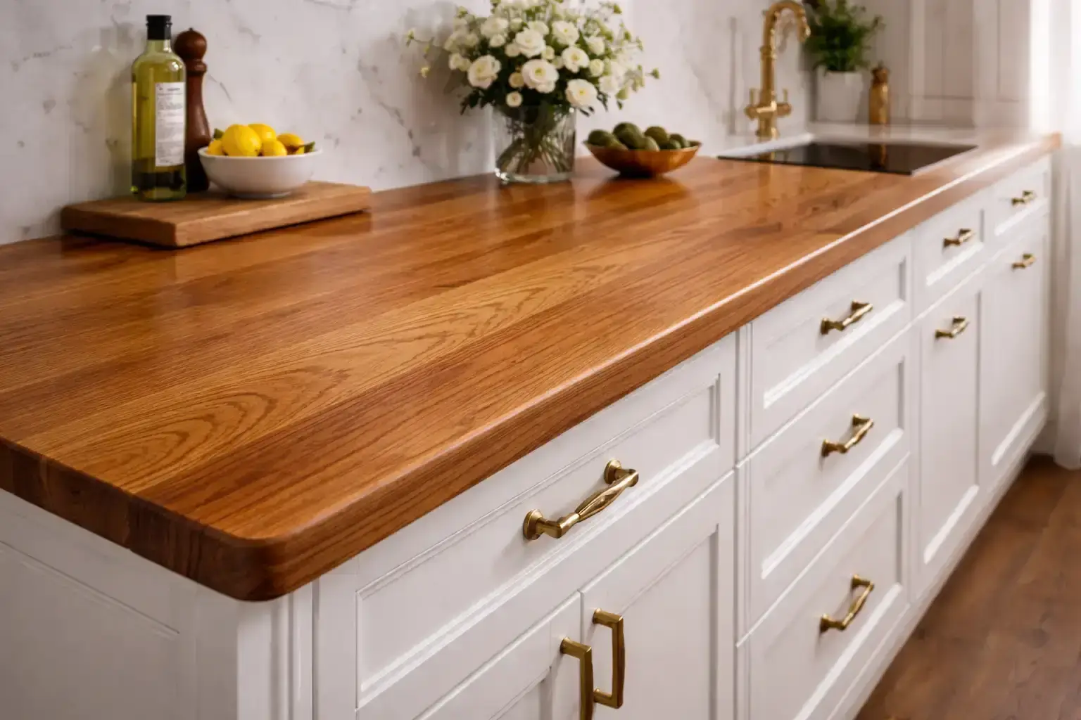 Персональный проект учитывает геометрию, эстетические предпочтения и интенсивность эксплуатации. Качественный сращенный или цельноламельный щит, правильное масляное покрытие и грамотный монтаж с компенсационными зазорами гарантируют службу 25–40 лет, становясь только красивее. Стартовая цена выше, чем у ДСП с пластиком или сосны, но замена дешёвой плоскости каждые 5–7 лет и отсутствие тактильного удовольствия от благородного материала обходятся дороже.