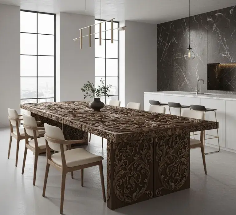 Готовые изделия редко учитывают реальную геометрию. Узкая кухня в хрущёвке диктует компактность и скруглённые углы. Просторная гостиная требует массивного обеденного предмета как композиционного центра.