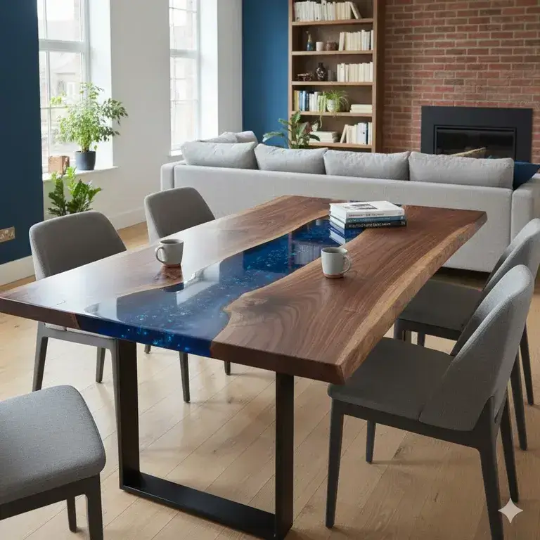 | Стол с заливкой эпоксидной смолой (река, геометрия) | от 46 200 сом | Уникальный дизайн, столешница из слэба дерева. |
