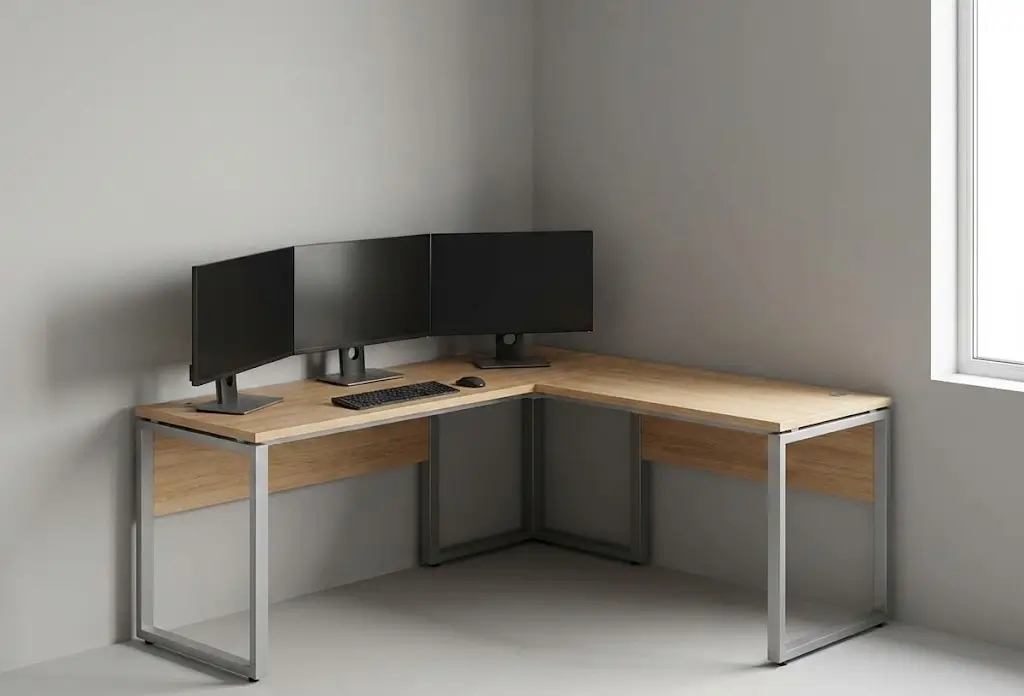 Угловой компьютерный стол на заказ выигрывает у прямого в экономии пространства и эргономике — он позволяет разместить монитор в углу, а по бокам организовать зоны для периферии и документов. Прямой вариант проще вписывается в интерьер и даёт больше свободы для ног.