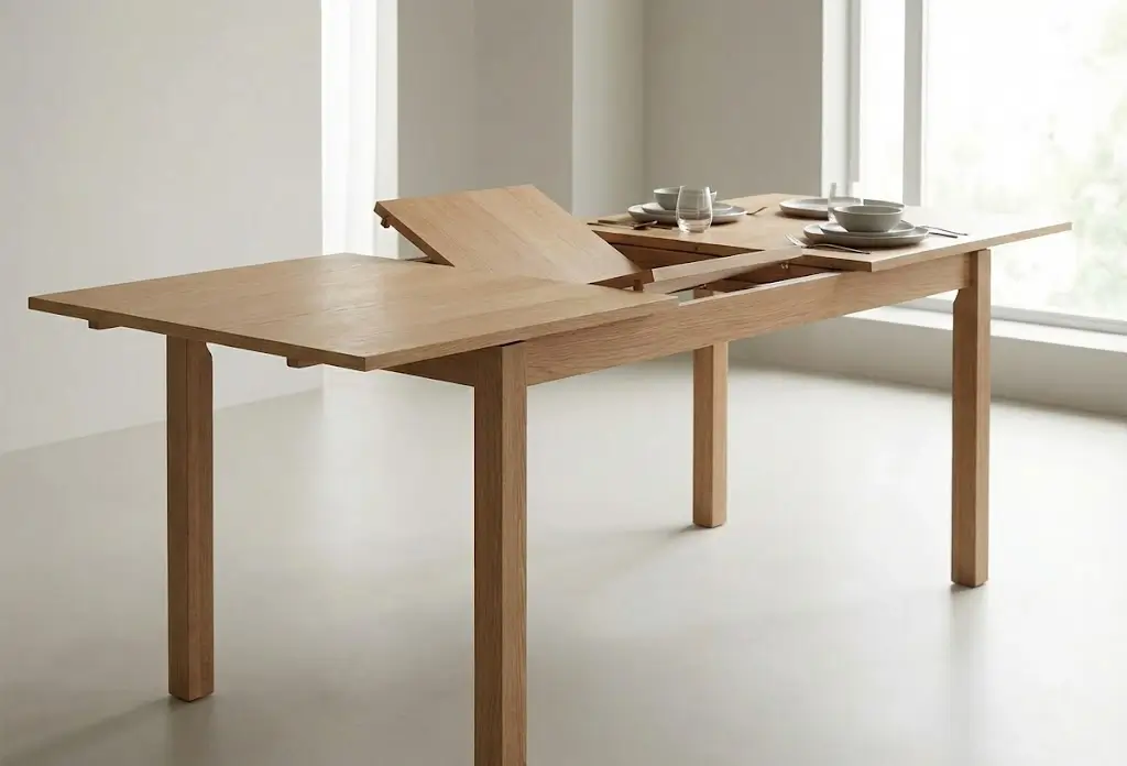 Индивидуальное изготовление обеденных столов позволяет интегрировать скрытые вставки и выбрать механизм под конкретные сценарии использования. Для ежедневного применения на 4–6 человек и периодического расширения до 8–10 оптимален синхронный механизм с центральной вставкой.