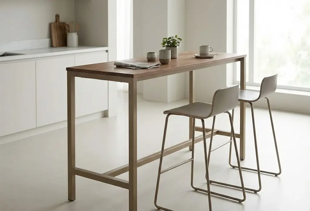 Совет эксперта от Азамата Токтогулова, ведущего дизайнера-конструктора мебельного производства в Бишкеке: «Если ваша кухня меньше 10 кв. м, заказывайте стол со скругленными углами. Это спасет ваши бедра от постоянных синяков, а визуально такая форма сделает пространство более текучим и мягким. Для узких кухонь-пеналов рекомендую откидной или раскладной стол-трансформер, который в сложенном виде занимает 30–40 см от стены».